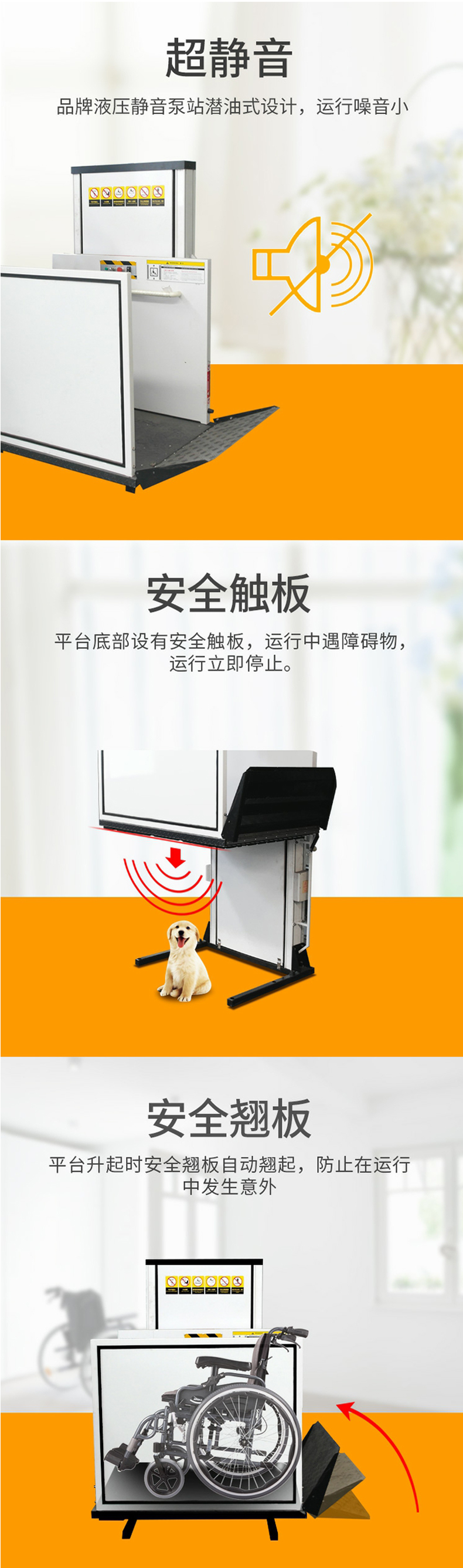 無(wú)障礙升降平臺(tái)一般升降高度在3米以內(nèi),轎廂尺寸根據(jù)家中空間進(jìn)行設(shè)計(jì)制作。我司可派技術(shù)人員免費(fèi)到家中勘察測(cè)量,并給出詳細(xì)的技術(shù)方案后,再進(jìn)行生產(chǎn)與安裝,滿足客戶的使用要求。