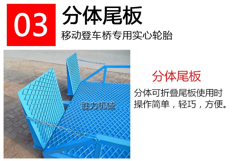移動(dòng)登車橋也被稱作叉車裝卸專用平臺(tái),是裝卸貨物的專用液壓設(shè)備,設(shè)備帶有移動(dòng)輪,可隨時(shí)移動(dòng)到裝卸地點(diǎn)。移動(dòng)登車橋根據(jù)額定載重量可分為6噸、8噸、10噸、12噸、15噸,設(shè)備總長11米,帶有坡度,叉車等搬運(yùn)車輛可通過移動(dòng)登車橋的坡度和高度直接駛?cè)胴涇噧?nèi)部進(jìn)行裝卸貨物作業(yè),在提高裝卸作業(yè)效率的同時(shí)又能充分保障作業(yè)安全。移動(dòng)登車橋無需外接電源,可通過手壓泵做動(dòng)力進(jìn)行能設(shè)備高度的調(diào)整,可以充分適應(yīng)各種不同高度的貨車。移動(dòng)登車橋加快裝卸貨物的速度,減少勞動(dòng)力,為企業(yè)獲取更大的經(jīng)濟(jì)效益。