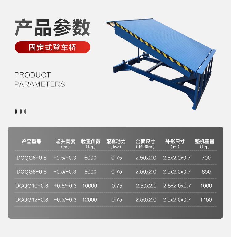 固定式登車(chē)橋是與倉(cāng)儲(chǔ)月臺(tái)一起的裝卸輔助設(shè)備,本設(shè)備與月臺(tái)一體,可根據(jù)貨車(chē)車(chē)廂不同高度調(diào)節(jié)即可調(diào)高也可調(diào)低,它的高度調(diào)節(jié)功能使貨車(chē)與庫(kù)房的貨臺(tái)之間架起一座橋梁,方便叉車(chē)駛?cè)胲?chē)廂內(nèi)部進(jìn)行貨物的批量裝卸。設(shè)備采用進(jìn)口液壓泵站,兩側(cè)設(shè)有防軋裙板,工作更加安全,僅需單人作業(yè),即可實(shí)現(xiàn)貨物的快速裝卸。固定登車(chē)橋可使企業(yè)減少大量勞力,提高工作效率,獲取更大經(jīng)濟(jì)效益。固定登車(chē)橋被廣泛應(yīng)用在裝卸車(chē)頻繁、車(chē)型不一的大型企業(yè)、倉(cāng)庫(kù)、車(chē)站、碼頭、倉(cāng)儲(chǔ)物流基地、郵政運(yùn)輸、物流配送等。