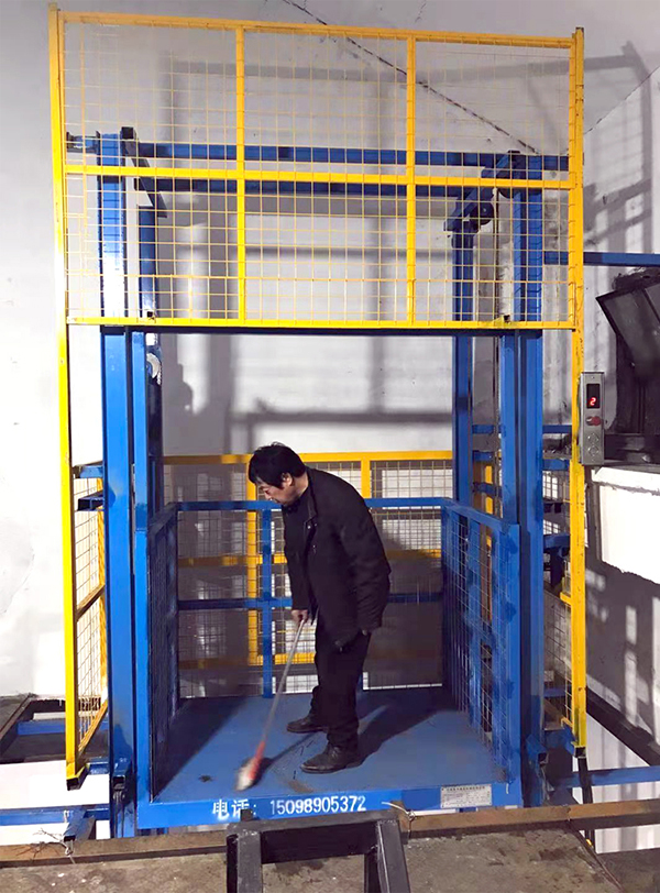 浙江海鹽鮑總采購的這款1噸升降貨梯的尺寸是1500*1100mm,載重1000kg,提升高度是3500mm,這個現(xiàn)場環(huán)境是在原有車間加層后,改為倉庫的一個安裝環(huán)境,從1500mm單方向進出。