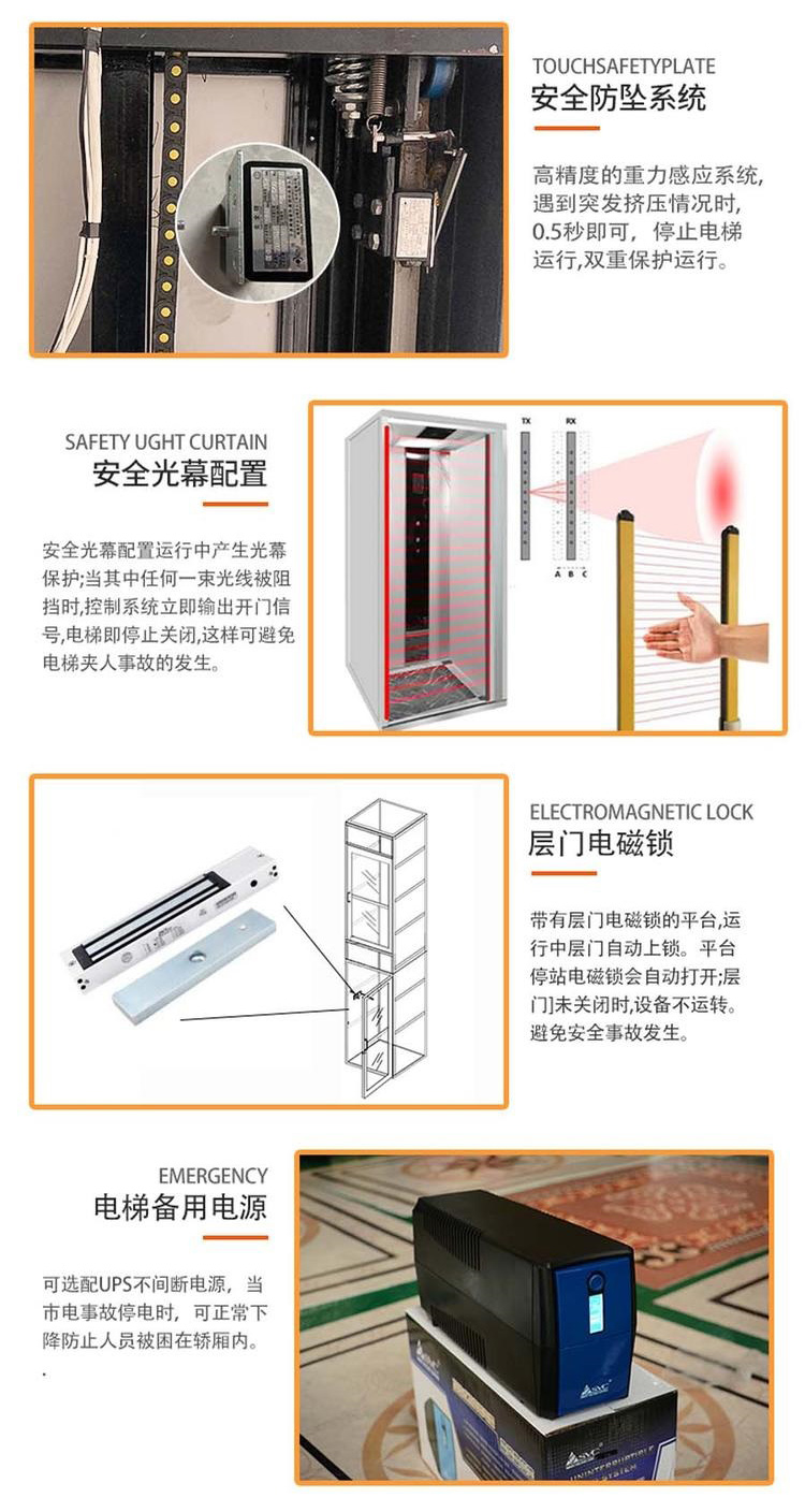 家用液壓電梯是靠液壓油缸頂升帶動(dòng)鏈條,鏈條帶動(dòng)轎廂上升,電梯控制系統(tǒng)裝有無(wú)機(jī)變速變頻器,電梯機(jī)械機(jī)構(gòu)設(shè)計(jì)合理、安全可靠、升降平穩(wěn)、采用油寖式合資靜音泵站,升降過(guò)程中無(wú)噪音、無(wú)頓挫感。開(kāi)門(mén)斷電,轎門(mén)廳門(mén)雙重保護(hù)所以液壓式電梯的安全系數(shù)是比較高的,更不會(huì)發(fā)生轎廂沖頂失速下降等情況。在電梯停電時(shí)按一下轎廂內(nèi)的應(yīng)急按鈕,會(huì)接通回油閥,液壓油慢慢的到油后電梯會(huì)靠自重慢慢下降,停靠至一層。