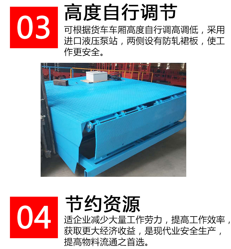 固定式登車橋是一種安裝在庫房月臺上的裝卸輔助設備,它不工作時與月臺地面平齊,裝卸作業(yè)時可根據貨車車廂的高度進行調節(jié)登車橋的高度,使貨車與倉儲的貨臺之間架起一座橋梁,叉車等搬運車輛通過它能直接駛入貨車內部進行貨物的批量裝卸作業(yè),僅需單人作業(yè),即可實現貨物的快速裝卸。固定式登車橋使企業(yè)減少大量勞力,提高工作效率,獲取更大經濟效益。