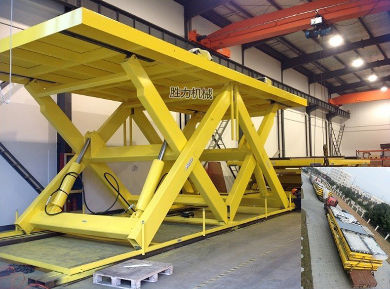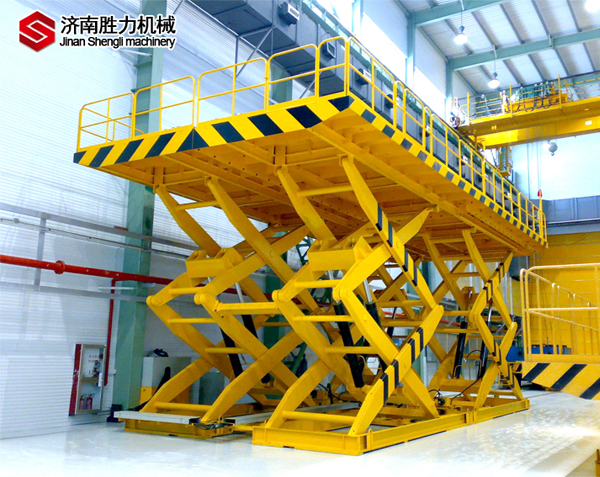 雙跨剪叉式升降平臺大多用于體積較大貨物的升降運(yùn)輸,產(chǎn)品液壓系統(tǒng)設(shè)置防墜、超載安全保護(hù)裝置,各樓層和升降臺工作臺面均可設(shè)置操作按鈕,實(shí)現(xiàn)多點(diǎn)控制。雙跨式升降平穩(wěn)、承載能力大,可承載100噸。該設(shè)備無需樓頂機(jī)房,工作時平臺直接從地面起升,到達(dá)所需高度后自動停止,作業(yè)完畢平臺回落到與地面平齊狀態(tài),不占據(jù)地面空間,不影響通道通行。雙跨剪叉升降平臺結(jié)構(gòu)堅(jiān)固,安裝維修簡單方便,是經(jīng)濟(jì)實(shí)用的低樓層間替代電梯的理想貨物輸送設(shè)備。