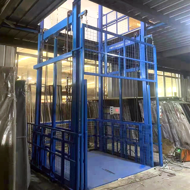 倉(cāng)庫(kù)升降貨梯是一種液壓升降設(shè)備,主要用于二三層以上的倉(cāng)庫(kù)、車(chē)間、超市等多層建筑物間的貨物運(yùn)輸。倉(cāng)庫(kù)升降貨梯是由導(dǎo)軌、鏈接、液壓油缸、液壓泵站、電控系統(tǒng)等組合而成的,因此也被稱(chēng)為導(dǎo)軌鏈條式升降平臺(tái)。