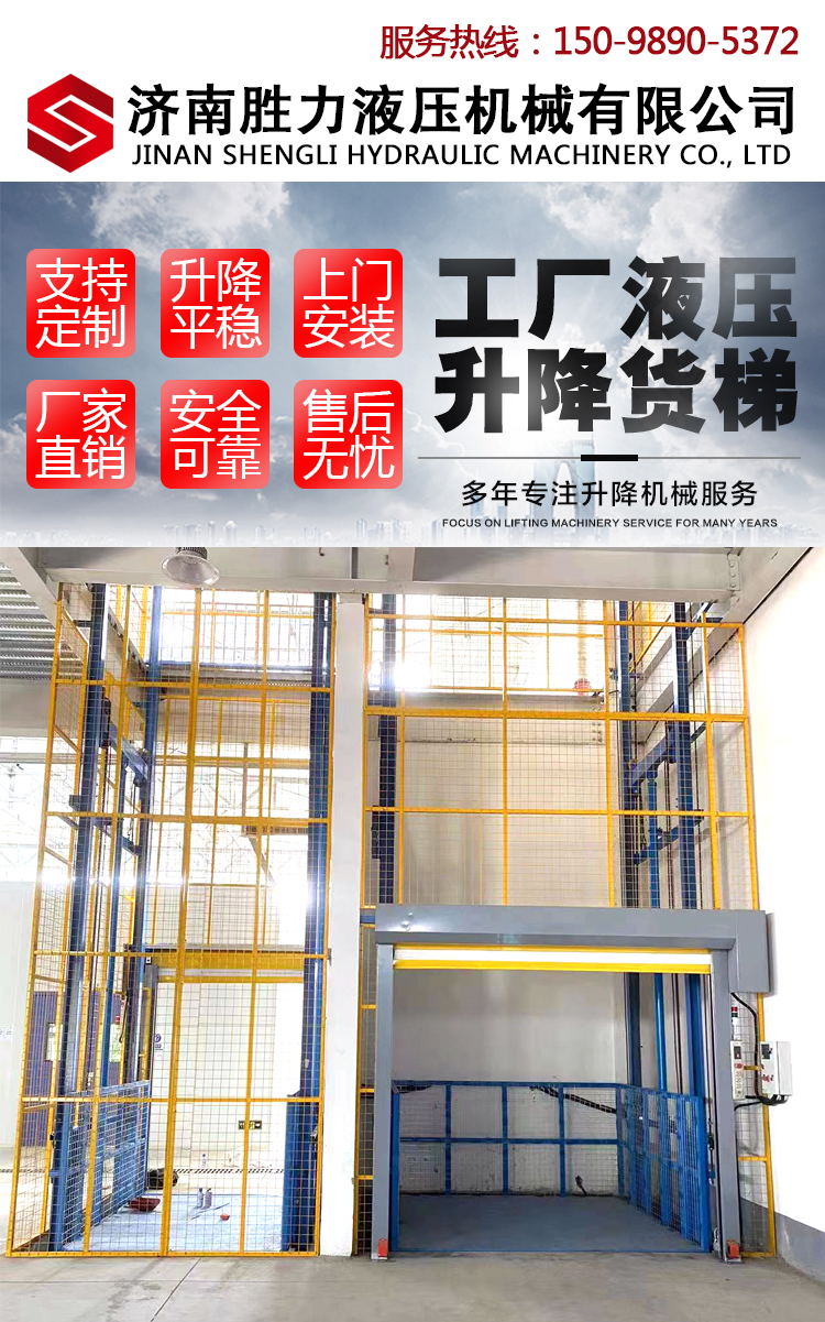 工廠液壓升降貨梯的安裝不受限制,無需地坑和井道,產(chǎn)品結(jié)構(gòu)堅固,載重量大,升降平穩(wěn),安裝維護簡單方便,是經(jīng)濟實用的低樓層間替代電梯的理想貨物輸送設(shè)備。